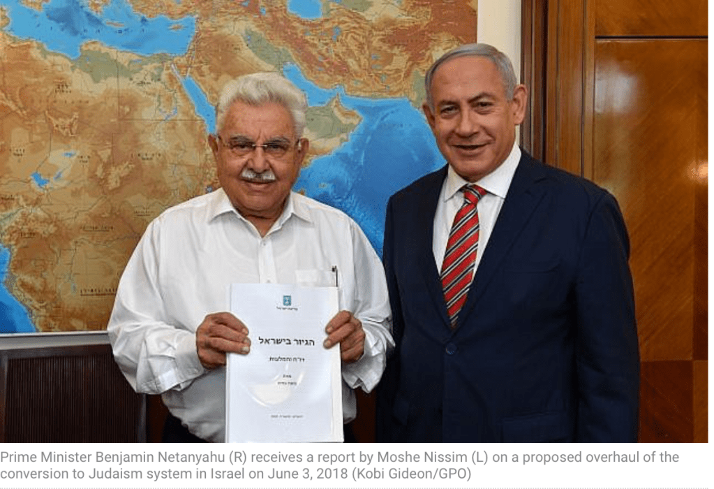 Konversionen zum Judentum werden, sofern sie in Israel durchgeführt werden, nur von orthodoxen Rabbinern und Gerichten anerkannt. Konversionen im Ausland werden, sofern sie von einem anerkannten Rabbiner begleitet und vor einem anerkannten Religionsgericht (Bet-Din) im Ausland bezeugt werden, anerkannt.