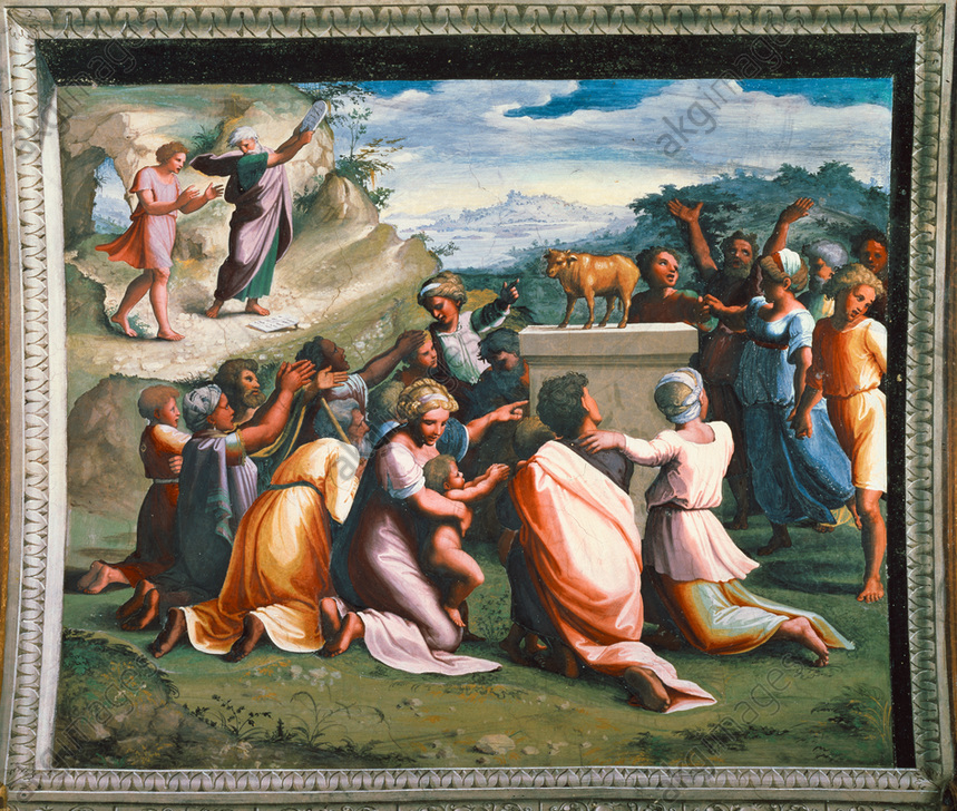 Moses muss bei seiner Rückkehr das volle Ausmass des Geschehens erkennen und zerstört voller Wut die göttlichen Gesetzestafeln, aber auch das Goldene Kalb.