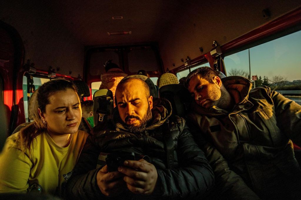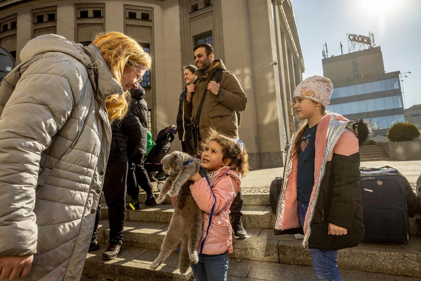 Drei Männer, zwei Frauen, drei Kinder, eine Katze, sieben Koffer warten im Morgengrauen auf ihren Transport nach Deutschland. Zufällig sind die Männer auch Syrer, ihre Frauen sind Ukrainerinnen. Die Männer haben in der Ukraine Medizin studiert. Zehn Jahre haben sie in Dnipro gelebt.
