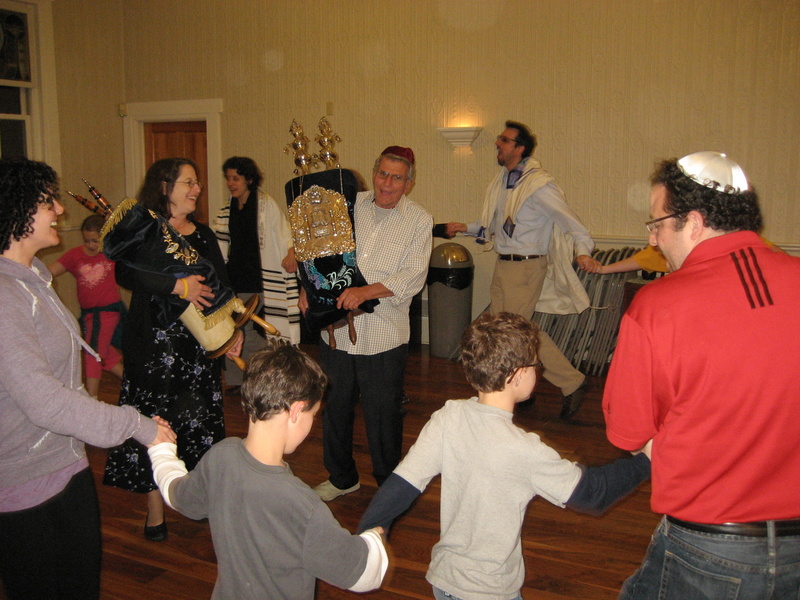 Simchat Torah, das Freudenfest der Torah, soll wirklich ein Freudenfest für alle sein. Während des Morgengottesdienstes werden alle Anwesenden mindestens einmal zur Torah aufgerufen. Es ist eine besondere Ehre für ein Gemeindemitglied, die „Bedingungen“ zu formulieren. Ob man ein Studium abgeschlossen hat, geheiratet hat, ein Kind bekam, oder, ob man, wie es bei unserer Gemeinde einmal formuliert wurde „während der Predigt des Rabbiners eingeschlafen ist“, der Phantasie sind fast keine Grenzen gesetzt. Niemand wird ausgelassen! Und so kann es denn sein, dass es beim Vorlesepult recht eng wird, wenn sich alle dort versammeln, die leider zu keiner der ausgesuchten Gruppen gehört haben. Ausnahmsweise werden auch alle Kinder, die noch nicht Bar/Bat Mitzwa sind, gemeinsam mit ihren Eltern aufgerufen, in kinderreichen Gemeinden eine ganz besondere Herausforderung an die Vorlesenden!