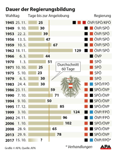 In Österreich liegt sie im Schnitt bei 60 Tagen, die kürzeste Zeit brauchte man im Jahr 1945 mit 25 Tagen, die längste lag im Jahr 1963 bei 129 Tagen.
