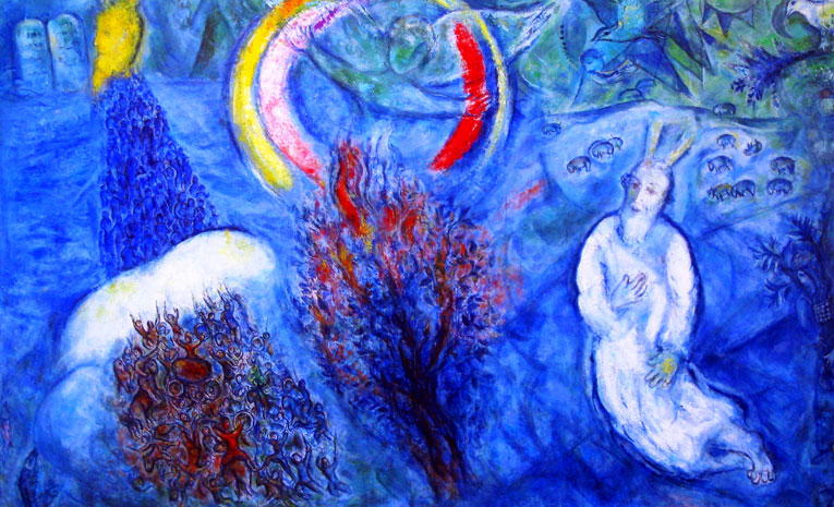 In den nächsten Versen treffen wir auf Feuer. Feuer vernichtet, wenn es nicht bekämpft wird. Feuer ist bedrohlich und löst in allen Lebewesen Angst aus. Wenn das Feuer nicht gelöscht wird, bleibt nur Asche zurück. Moses aber trifft bei seiner Wanderung mit dem Vieh auf einen Dornbusch, der brennt, ohne zu verbrennen. Es ist weniger die Angst, die ihn näher gehen lässt, es ist Neugierde. Gott gibt sich ihm hier, mitten in der Einöde der Wüste, erstmals zu erkennen. Es ist das erste Mal, dass Gott mit ihm kommuniziert und das ist der Beweis, dass Gott Moses ausgewählt hat, die Kinder Israels zu retten. Der brennende Dornbusch ist ein deutliches Zeichen an Moses, dass seine Brüder und er nicht zerstört werden können und nicht untergehen werden. Doch kann Moses das hier schon erkennen?