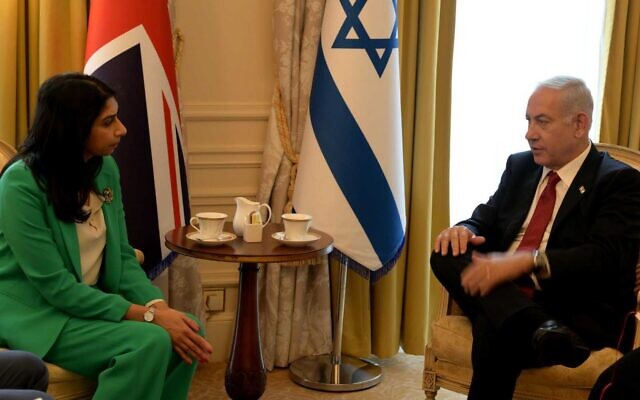 Gestern Abend traf sich PM Netanyahu noch mit der britischen Innenministerin Suella Braverman. Hat die denn keine anderen Pläne für das Wochenende???Offensichtlich fand das Treffen noch vor dem Ende von Shabbat statt, das in London um 19:11 war. Draussen vor dem Fenster schien aber noch die Sonne. Die ultra-religiösen Koalitionspartner und Wähler werden nicht zufrieden mit ihm sein!