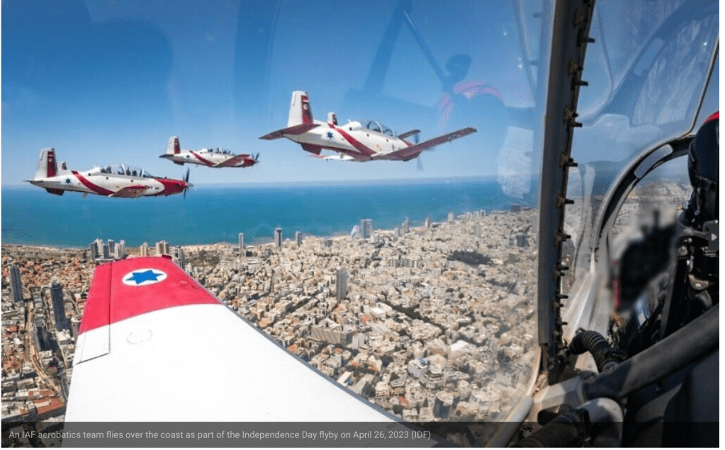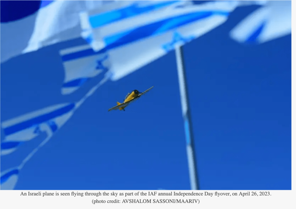 Unmittelbar vor dem Beginn der Veranstaltung begann die IAF mit dem traditionellen Überflug, der in den folgenden Stunden über das ganzen Land fortgesetzt wurde. Mehr als 100 Maschinen, mehrere Dutzende davon aus den USA, GB, Deutschland und Italien flogen nicht nur über das gesamte Land, sondern führten auch eine spannende Flugschau vor. Eine F-35 kollidierte mit einem Vogel und musste sicherheitshalber unbeschädigt den Flug abbrechen, ein Apache hatte ein technisches Problem und musste auf einem Feld notlanden.