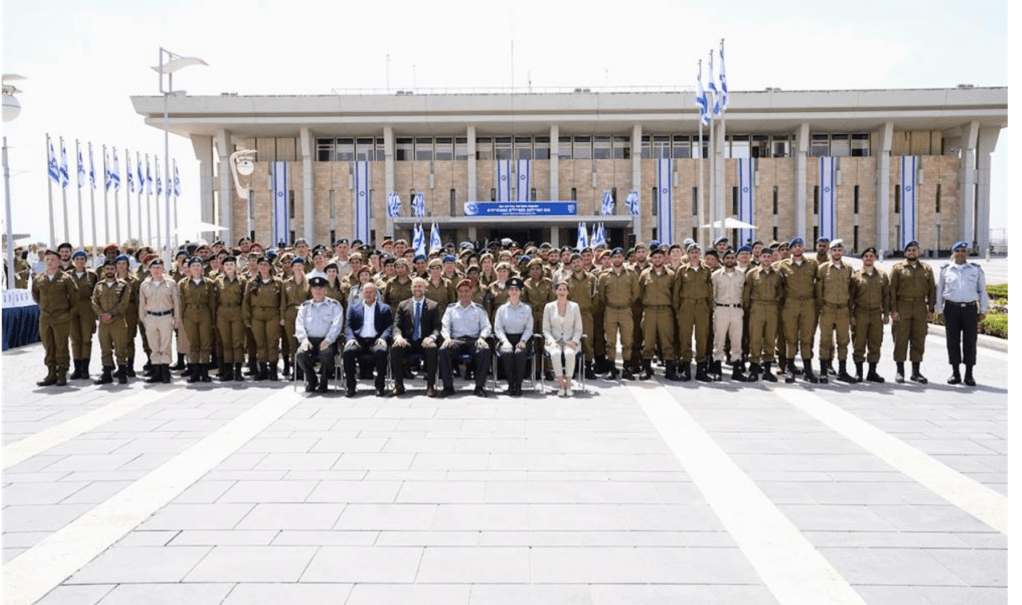 120 Soldaten sind es, die aus der Hand des Präsidenten ihr Zertifikat entgegennehmen können. Mit dem militärischen Zeremoniell klappt es noch nicht so ganz, aber das stört in dem Moment niemanden! 120 junge Menschen, die Tag für Tag für unsere Sicherheit an den Grenzen und im Inland sorgen und dabei ihr Leben riskieren, stehen hier stellvertretend für alle Soldaten, Grenzpolizisten und Polizisten. !כל כבוד
