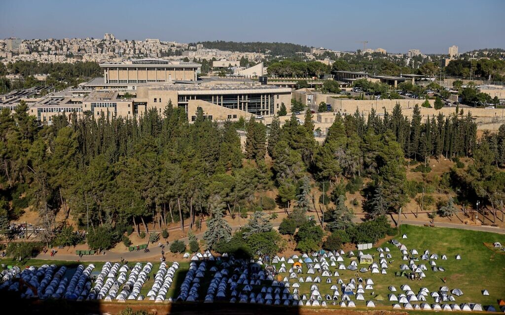 Unterhalb der Knesset haben die Demonstranten ein Zeltdorf errichtet. Heute am frühen Morgen haben Zigtausende sich an der Kotel und auf dem Platz davor zum gemeinsamen Morgengebet versammelt. Nach dem Gebet begann sich eine Menschenkette von der Kotel bis zur Knesset zu bilden, weitere Menschenketten werden von zwei Standorten der Hebrew University zur Knesset laufen.