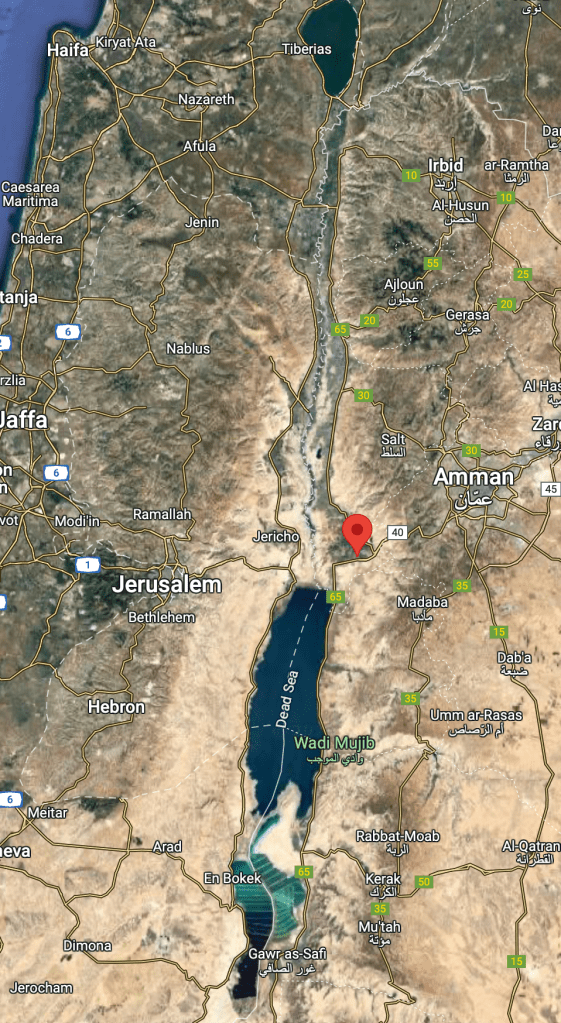Als einen der letzten Lagerplätze vor der Überquerung des Jordans lagerten die Israeliten in Beit Pegor, in Moab, am nördlichen Ende des Toten Meeres. Der Blick von dort geht über den Jordangraben bis nach Jericho, Ramallah, Hebron und Jerusalem.