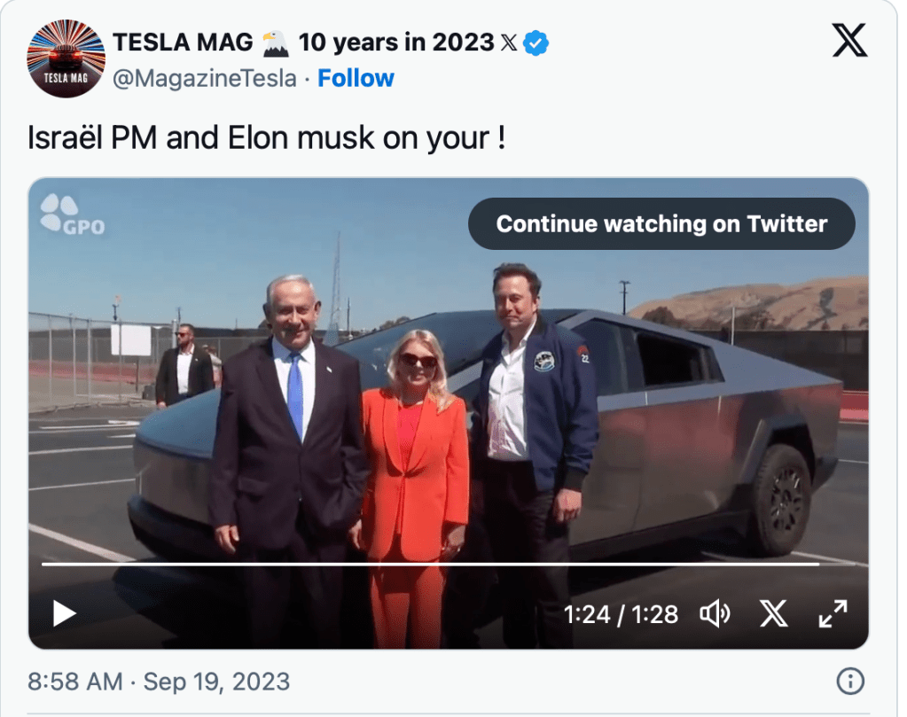 Anschliessend gab es die Charme-Offensive des PM, um dessen eigentlichen Besuchszweck zu forcieren. Sein Plan ist, Musk soll in Beer Sheva eine nennenswerte Investition starten. Im Gegenzug lobte der ewig-grinsende PM Musk als «Verfechter der Meinungsfreiheit» und «Gegner des Antisemitismus». Jetzt wird es aber problematisch. Nachdem Musk die ehemalige Plattform Twitter aufgekauft und in «X» umgetauft hatte warf die Anti-Defamation-League (ADL) Musk immer wieder vor, zu wenig gegen den Antisemitismus auf der Plattform zu tun. Statt sich gemeinsam über das Thema auseinander zu setzen, klagte Musk. «Um den Namen unserer Plattform von Vorwürfen des Antisemitismus zu reinigen, bleibt uns offenbar keine Wahl, als eine Diffamierungs-Klage gegen die Anti-Defamation-League einzureichen. Oh, welche Ironie.» spottete er. Mehr noch, er machte die pro-israelische NGO direkt für den Verlust vieler Werbekunden verantwortlich. «In unserem Fall könnten sie verantwortlich für den Verlust der Hälfte des Firmenwertes sein, also 22 Milliarden Dollar.» Ob das eine gute Ausgangsbasis für eine gemeinsame Zukunft ist? Netanyahu hat ihm jedenfalls eine Generalabsolution erteilt …