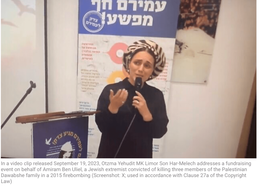In der vergangenen Woche unterzeichneten 14 MKs eine Petition, die für verbessert Haftbedingungen votierten. MK Son Har Melech, Otzma Yehudit, nahm in der vergangenen Woche an einer Konferenz teil, bei der sie ihn nicht nur als unschuldig bezeichnete, dessen Geständnis unter Folter erpresst worden sei. «Er ist ein rechtschaffener Mann, ein Heiliger.»