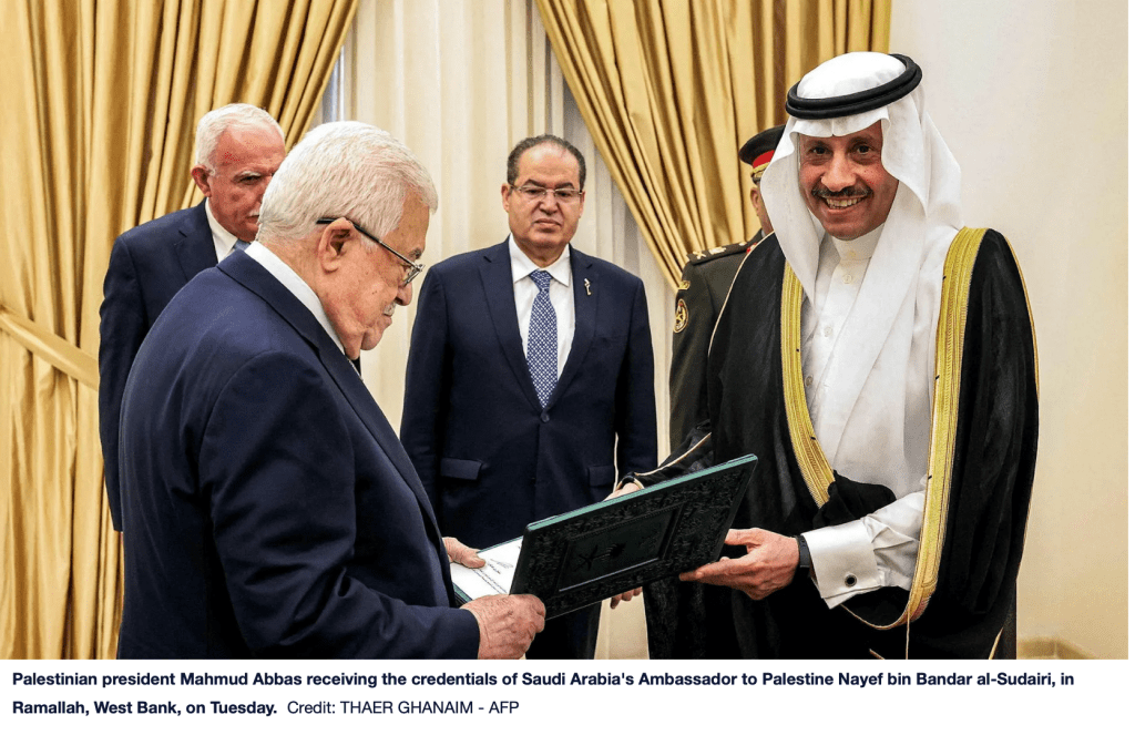Der saudi-arabische Botschafter Nayef al-Sudairi ist in Ramallah angekommen. Dort hat er dem PA-Präsidenten Mahmoud Abbas seine Akkreditierung überreicht. Al-Sudairi ist auch Botschafter Saudi-Arabiens in Jordanien. Der neue Botschafter betonte, die Durchsetzung der «Zwei-Staaten-Lösung» sei der zentrale Punkt für die Verhandlungen mit Israel. Saudi-Arabien plant, zeitnah ein Konsulat in Ost-Jerusalem zu eröffnen. Allerdings müssen die Rahmenbedingungen hierzu noch mit Israel abgeklärt werden. Neben der zwei-Staaten-Lösung verlangen die Saudis Ost Jerusalem als Hauptstadt des neuen Staates, Rückzug vom Golan und «eine gerechte Behandlung» der palästinensischen Flüchtlinge. Allessamt Bedingungen, die Israel sehr sauer aufstossen werden und von den rechts-extrem-nationalistischen Regierungspolitikern a priori abgelehnt werden.