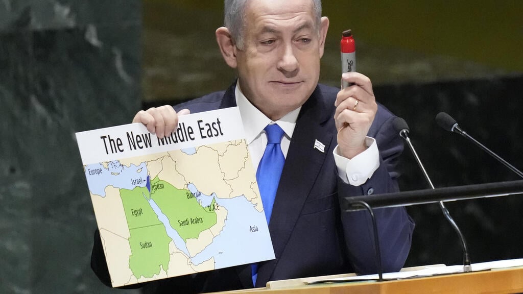 Der Sprecher des deutschen Aussenministeriums, Sebastian Fischer, zeigte sich am Montag besorgt über eine der Karten, die PM Netanyahu anlässlich seiner Rede vor der UNO am Freitag dem (nahezu nicht vorhandenen) Publikum zeigte. Die Karte zeigte den «Neuen Nahen Osten». Umgeben von Sudan, Ägypten, Jordanien und Saudi-Arabien sah man Israel.
