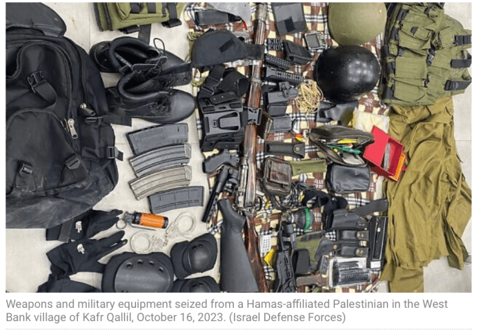 Während der letzten Tage hat die IDF im Gebiet von Judäa und Samaria 360 gesuchte Palästinenser festgenommen. 210 der Gefangenen sind mit der Hamas verbunden. In der Nacht auf heute wurden 20 Hamas-Mitglieder in Kfar Qallil festgenommen. Dabei wurde auch eine grosse Menge an militärischer Ausrüstung und Waffen sichergestellt.