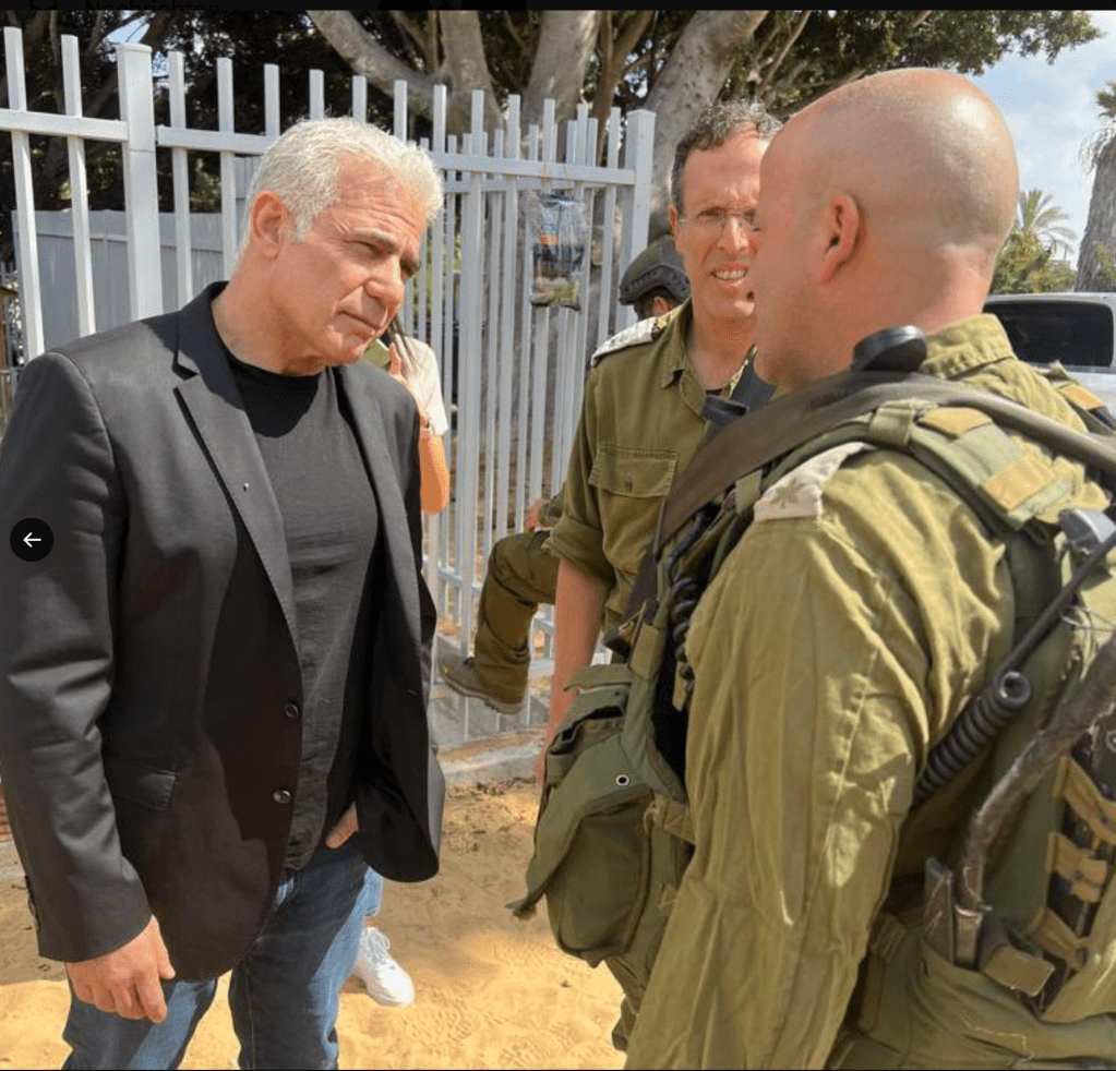 Oppositionsführer Yair Lapid besuchte gestern den Moshav Netiv Ha’asara in unmittelbarer Nähe des Personen-Grenzübergangs nach Gaza, Erez. Während des Überfalls durch die Hamas-Terroristen am 7. Oktober wurden etwa 20 der 900 Bewohner ermordet, zahlreiche Menschen wurden verletzt. Die Terroristen benutzten Paragleiter, um in das Dorf einzudringen. Heute ist der Moshav leer, statt der ehemaligen Einwohner sind dort jetzt Soldaten stationiert. Lapid traf Vertreter der Einwohner und Soldaten. «Israel wird niemals vergeben und vergessen. Wir werden die Schlächter zur Rechenschaft ziehen.»