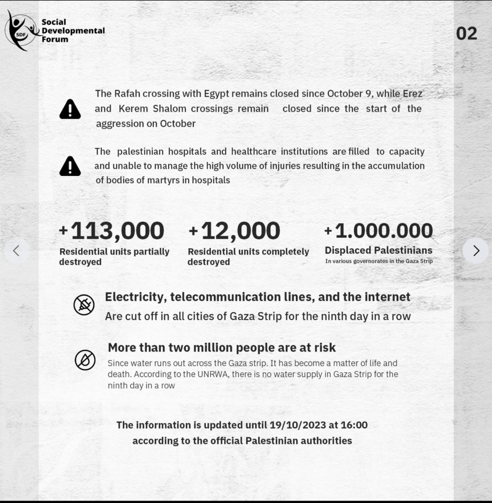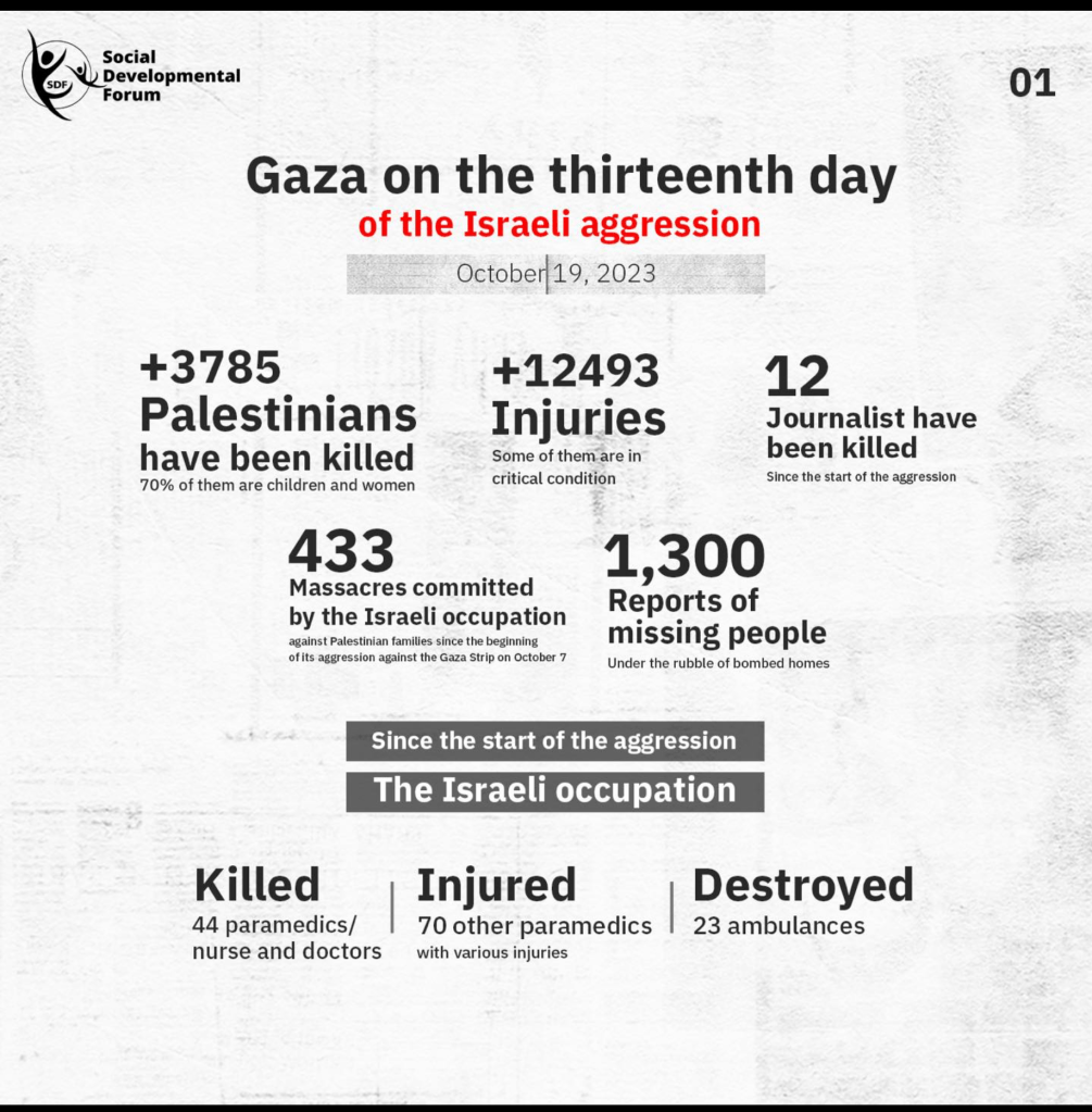 Durch gezielte Falschinformationen zeichnet sich eine im Facebook auftretende Gruppe, das in Gaza beheimatete «Social Developmental Forum – SDF» aus. Neben den propagandistischen Bildern, die durch «Farbtupfer» eine besondere Stimmung auslösen, veröffentlicht sie auch täglich Statistiken. Viele der Zahlen sind wahrscheinlich korrekt, auffällig ist aber die Zahl der «Massaker, ausgeführt durch die israelische Besatzung», die mit 433 seit dem 7. Oktober angegeben ist. Nur zur Erinnerung: Seit dem Jahr 2005 lebt kein einziger Israeli mehr in Gaza. Und welche Massaker sollen stattgefunden haben??