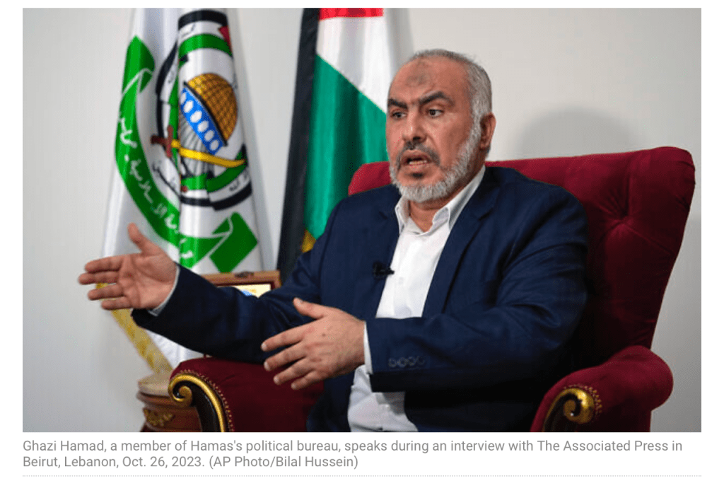 Bei einem Interview mit der britischen BBC in Beirut brach Ghazi Hamad, Mitglied des politischen Büros der Hamas das Gespräch wutschnaubend ab, als er gefragt wurde, wie er das Massaker an der israelischen Bevölkerung rechtfertigen könnte. Hamad bediente sich des Mantras der Hamas-Terror-Organisation, dass die Massaker nicht geplant gewesen wären, sondern sich «rein zufällig aus der Situation ergeben» hätten. «Es gab keinen Befehl, Zivilisten zu töten. Das Gebiet dort ist sehr gross, es gibt dort viele Menschen, und es gab Zusammenstöße und Konfrontationen.» Als der Journalist nachhakte: «Sie sind in Häuser eingedrungen, es waren keine Konfrontationen» sprang Hamad auf und verliess wütend den Raum. «Ich will an dieser Stelle das Gespräch beenden.» Mitgeschnittene Gespräche, teilweise verschlüsselte Anweisungen, Bilder von Bodycams und Berichte von Überlebenden des Massakers sprechen eine ganz andere Sprache!