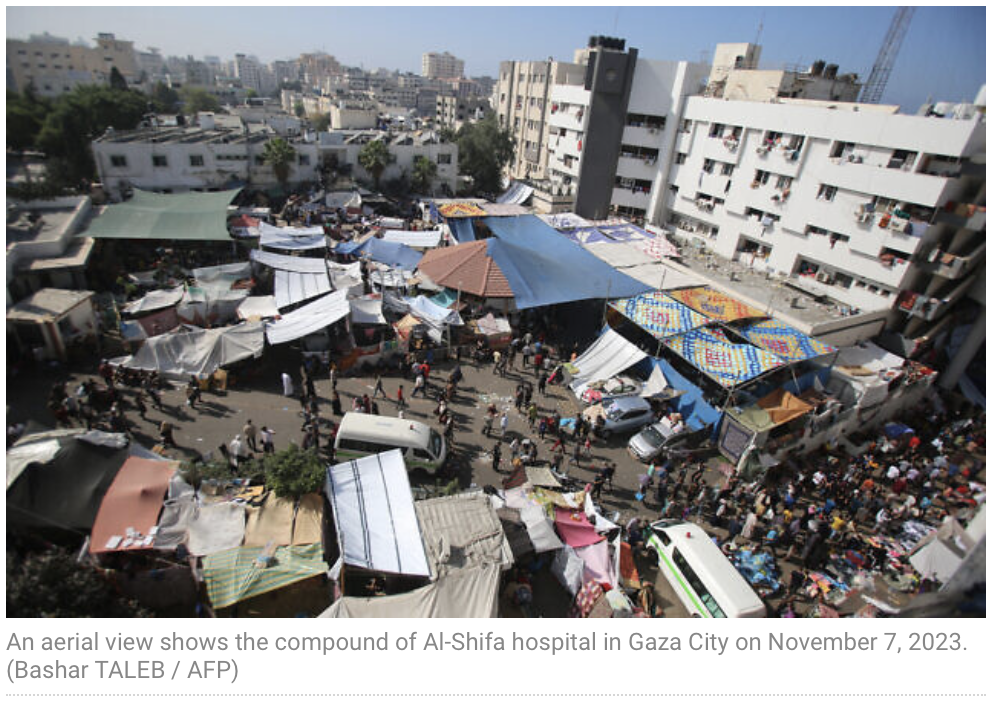 Beim Shifa-Spital im nördlichen Gaza City trafen gestern wieder Lieferungen mit Medikamenten und medizinischen Hilfsmitteln ein. Die UN beklagte, dass diese Lieferung nur ein Tropfen auf den heissen Stein sei. In einer gemeinsamen Presseaussendung betonten die UNRWA und die WHO, dass diese Lieferung nur unter grössten Gefahren für ihre Mitarbeiter und unter permanentem Beschuss der IAF hätte erfolgen können. Die Zustände im Krankenhaus würden sich von Minuten von Minute verschlechtern, die Betten seien oft doppelt belegt. Kranken müssten bereits in den Fluren und auch ausserhalb des Gebäudes behandelt werden. Israel hat bereits Pläne veröffentlicht, dass sich unter dem gesamten Klinikbereich Einsatzzentralen der Hamas befinden.
