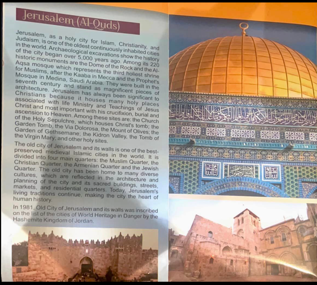 Beim World Travel Market, der Anfang des Monats in London stattfand, fehlte erstmals seit 37 Jahren in Folge Israel. Dafür präsentierte sich «Palästina» so geschickt, dass der Stand zahlreiche Besucher anzog. 200 Staaten präsentierten sich auf dieser weltgrössten Tourismusbörse, 4.000 Fachbesucher und einige Zehntausend interessierte Kunden genossen das breite Angebot. Wie schon in den Jahren vorher warb Palästina mit «palästinischen Produkten», die interessanterweise aus Beit Shean und Ashdod stammten, wie die Etikettierung bestätigte. In einer Broschüre, die die besten Destinationen in Palästina beschreibt, wird Jerusalem als besonders wichtig für das Christentum beschrieben, aber auch als «eine der besterhaltenen mittelalterlichen islamischen Städte der Welt.» Juden werden nur ganz am Rande erwähnt. Überhaupt liest sich die Broschüre wie das Wunschdenken aus einer fernen Zeit.