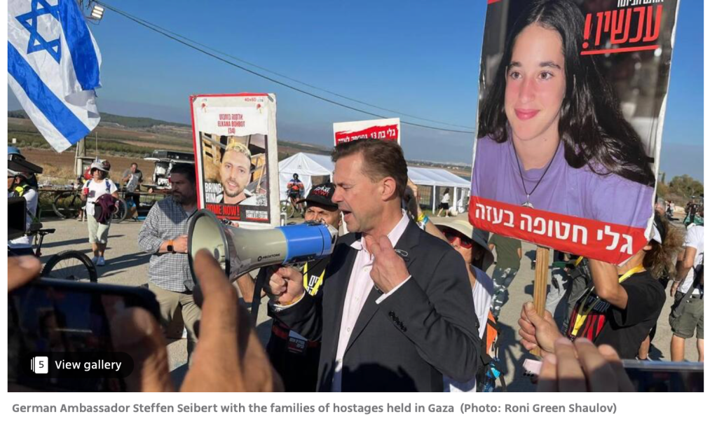 Der deutsche Botschafter in Israel, Steffen Seibert, schloss sich heute dem Marsch der Familien von in Gaza festgehaltenen Geiseln an. «Verliert nicht die Hoffnung!» sagte er ihnen, Deutschland würde sich auf verschiedenen diplomatischen Kanälen bemühen, die bedingungslose Freilassung der Geiseln zu erreichen. «Sie müssen alle sicher und in gutem Gesundheitszustand zurückkehren.» Botschafter Seibert hat sich in seiner Zeit in Israel hervorragend integriert und geniesst bei seinen Landsleuten im Inland und in Deutschland einen hervorragenden Ruf.