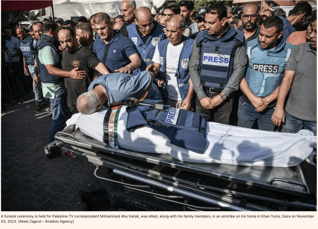Middle East Monitor ist nach al-Jazeera einer der eifrigsten Verbreiter von fake-news. Im am Freitag veröffentlichten Artikel «Silencing the Journalists» verbreiteten sie schamlos die Lüge, dass die IDF bereits mehr als 50 Journalisten, nota bene, alle zusammen Gazaner, im Gazastreifen getötet, mehr als 30 «infolge der derzeitigen exzessiven, unverhältnismäßigen Teppichbombardements Israels auf den Gazastreifen verletzt» und mindestens zwei weitere vermisst seien. Und sie beeilen sich auch gleich, festzuhalten, dass im gesamten Zeitraum zwischen 2002 und 2022 «Israel 44 Journalisten in Palästina» getötet habe. Sie beschreiben Bilder und Videos, die der Welt zeigen sollen, wie grausam Israel vorgeht. Ein echtes journalistisches Lügen-Highlight ist der Bericht von einem fiktiven Telefonat: «Der direkte Telefonanruf der israelischen Streitkräfte (IDF) an den Ehemann von Youmna El Sid, in dem ihnen gedroht wurde, dass sie ins Visier genommen würden, wenn sie ihren Wohnsitz nicht verliessen und in den Süden zögen.» Nicht nur, dass der gesamte Artikel eine einzige grosse Lüge ist, das Dramatische ist, dass die Welt es glaubt. Ist es verwunderlich, wenn mir schlecht wird, wenn ich das Tag für Tag lesen muss?