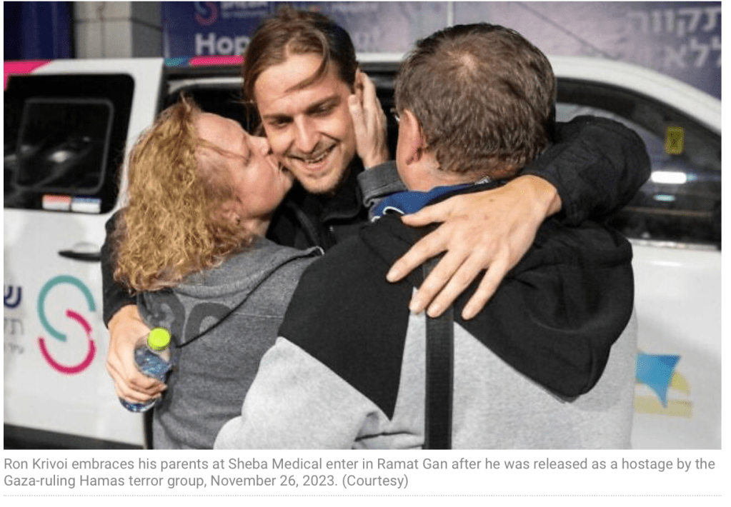 Um 19:30 wurden die zehn heute freigelassenen Geiseln dem IRK übergeben. Das teilten sowohl die Hamas, als auch der Palästinische Islamische Djihad hat. Demnach befinden sich unter den freigelassenen Geiseln, die von beiden Terror-Organisationen festgehalten worden waren. Die Gruppe soll fünf der neun noch im Gazastreifen festgehaltenen Kinder und sieben Frauen, sowie zwei russische Staatsbürger umfassen. Gegen 21 Uhr bestätigte IDF-Sprecher Daniel Hagari, dass der Prozess der Übergabe noch nicht abgeschlossen sei.