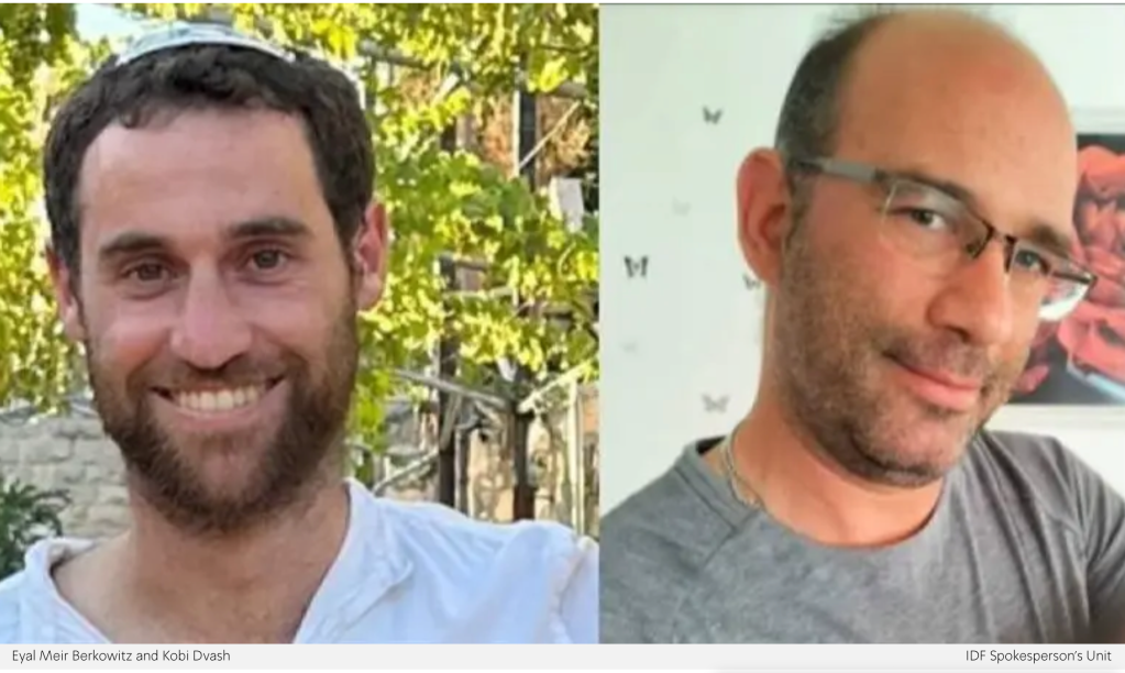 Auch heute beklagt die IDF wieder den Verlust von zwei Soldaten. Sgt. Maj. (res.) Kobi Dvash, 41, und Master Sgt. (res.) Eyal Meier Berkowitz, 28, s’’l, fielen bei Bodenkämpfen im nördlichen und südlichen Gazastreifen.