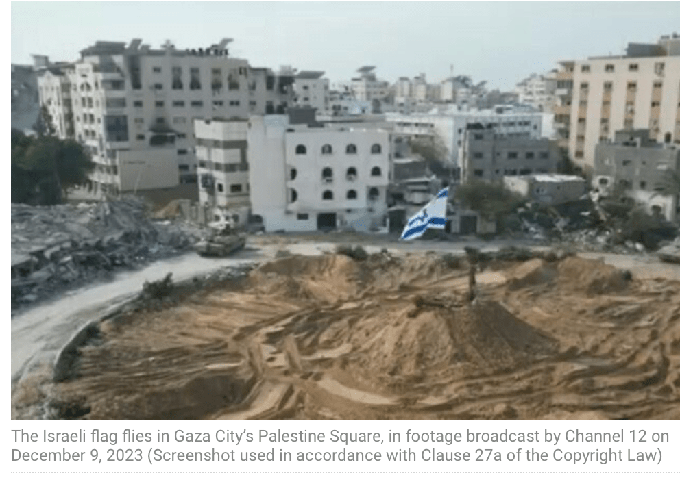 Der Palestine–Platz in Gaza City, auf dem die Hamas-Schlächter ihre Opfer nach der Verschleppung auf Motorrädern, Golf-Carts und Pick-Ups paradiert und dabei verhöhnt und gedemütigt haben, wurde von der IDF eingenommen. Auch anlässlich der Befreiung der Geiseln fanden solche Paraden statt, blieben aber von den Medien weitgehend unbeachtet. Auf einem aufgeschütteten Hügel in der Mitte des zerstörten Platzes weht seit gestern die israelische Flagge. Die Soldaten haben dort eine grosse Chanukkia aufgestellt und am ersten Abend von Chanukka dort die erste Kerze angezündet.