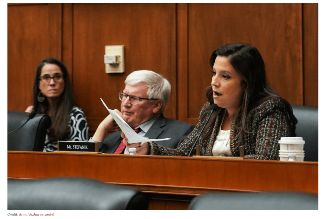 Bei der Kongressanhörung fiel die Präsidentin der Pennsylvania Universität, Liz Magill, durch einen besonders redundanten Sprachgebrauch auf. Seit 2014 vertritt Elise Stefanik den US-Bundesstaat Albany im US-Repräsentantenhaus als Vertreterin der Republikaner. Seit 2021 ist sie die Fraktionsvorsitzende der Partei. Eine Position, die als Sprungbrett für weiterführende Karriereschritte gilt.
