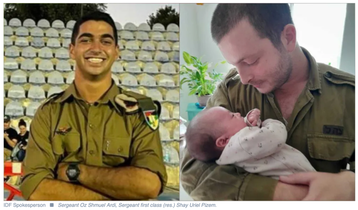 Die IDF musste heute auch den Tod zweier Soldaten bekanntgeben. Sgt. Oz Shmuel Aradi, 19, s’’l, fiel bei Bodenkämpfen in Gaza. Bei der gleichen Operation wurden vier Reservisten schwer verletzt. Vor einer Stunde wurde der Tod von Sgt. First Class (res.) Shay Uriel Pizem, 23, s’’l, bekanntgegeben. Er verlor sein Leben bei einer Operation im südlichen Gazastreifen.