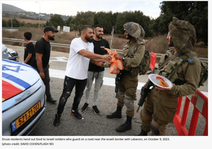 Die gute Nachricht des Tages: die drusischen Gemeinden auf dem Golan waren bisher nicht immer als israeltreu bekannt. Im Gegensatz zu ihren drusischen Mitbürgern, die in 18 Orten zwischen Akko, Sfad und dem Karmelgebirge südlich von Haifa leben. Die Drusen dieser Orte stehen dem Staat Israel loyal gegenüber. Die Männer dienen in der IDF, es gibt auch wenige Mädchen, die entgegen der Tradition nicht in der IDF, sondern bei der Grenzpolizei dienen. Drusen sind als eigenständige Religionsgemeinschaft anerkannt, verstehen sich als Araber, aber nicht als Muslims. Die Drusen machen mit knapp über 150.000 Seelen 2.0% der Bevölkerung aus.