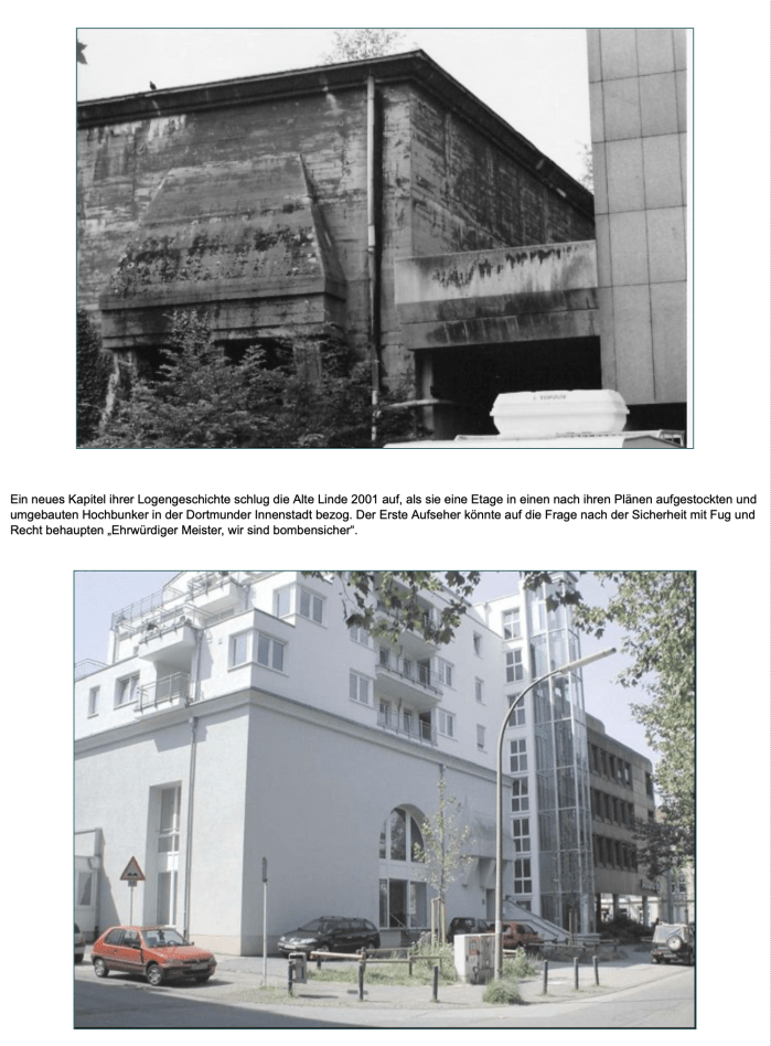 Heute leben die Freimaurer in einem alten, umgebauten Hochbunker an der Landgrafenstrasse/Ecke Wittelsbacherstrasse.