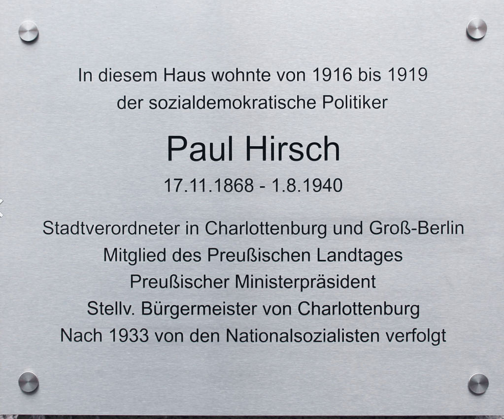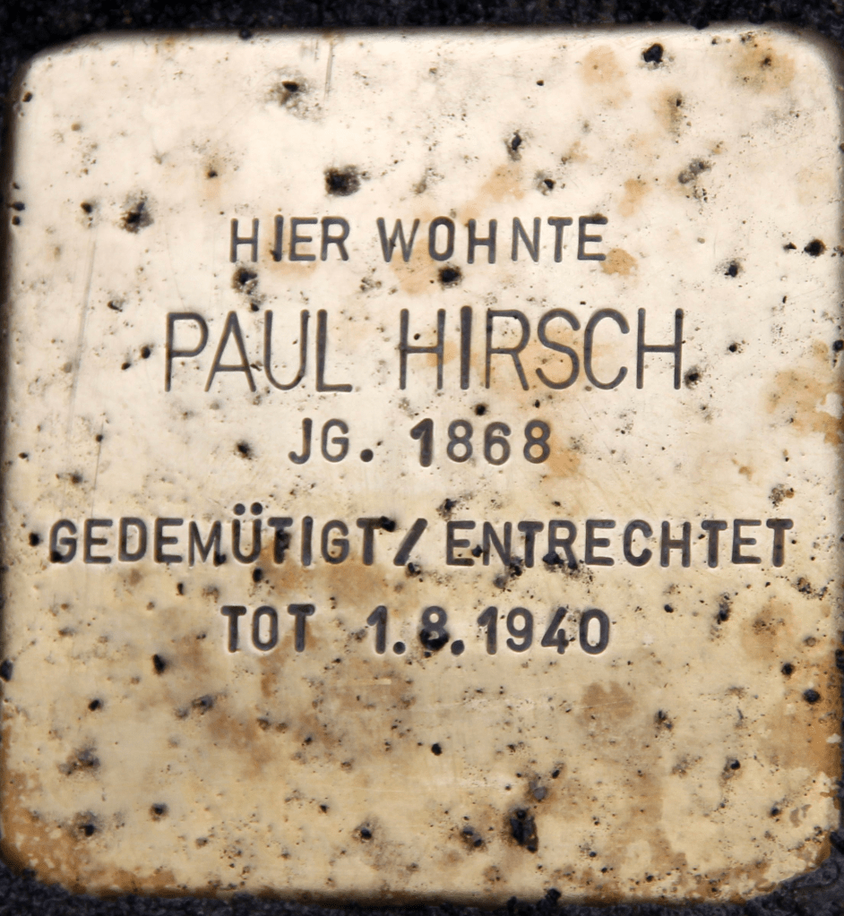 Hirsch zog mit seiner Frau Lucie nach Berlin, wo er 1940 im Alter von nur 71 Jahren an Altersschwäche und Unterernährung starb. Die Nazis hatten ihm, der seinem Land immer treu gedient hatte, ab 1934 die Rente verweigert. Seine Frau folgte ihm nur ein Jahr später in den Tod, nachdem sie den Deportationsbeschluss erhalten hatte. An seinem Haus gibt es eine Gedenktafel, vor dem Haus einen Stolperstein.