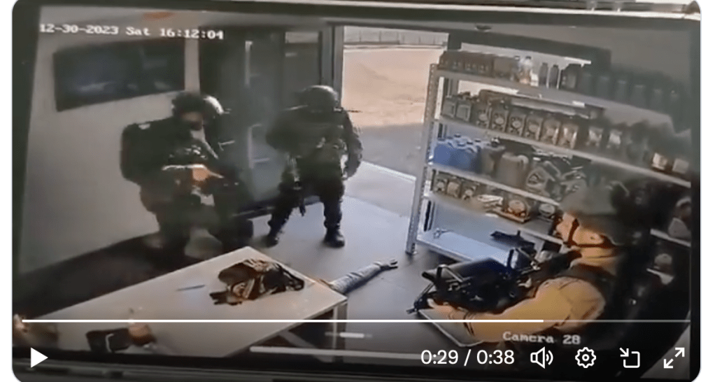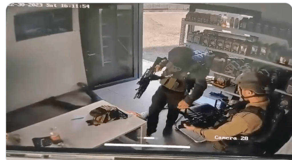 In einem Kiosk im Judäa haben zwei Soldaten völlig vergessen, dass sie Menschen sind. Sie haben den bereits am Boden knienden Mitarbeiter des Kiosks zunächst gezwungen sich auf den Boden zu legen. Anschliessend trat einer der beiden Soldaten ihn mehrfach, ein zweiter Soldat trat beim Verlassen des Kiosks noch auf den hilflos am Boden Liegenden. Welche Rolle ein dritter bewaffneter Soldat in diesem Vorfall macht, ist nicht eindeutig im Video erkennbar. Die IDF hat eine Untersuchung eröffnet. Der Zeitstempel sollte es möglich machen, die beiden Soldaten zu identifizieren und entsprechend zu bestrafen.