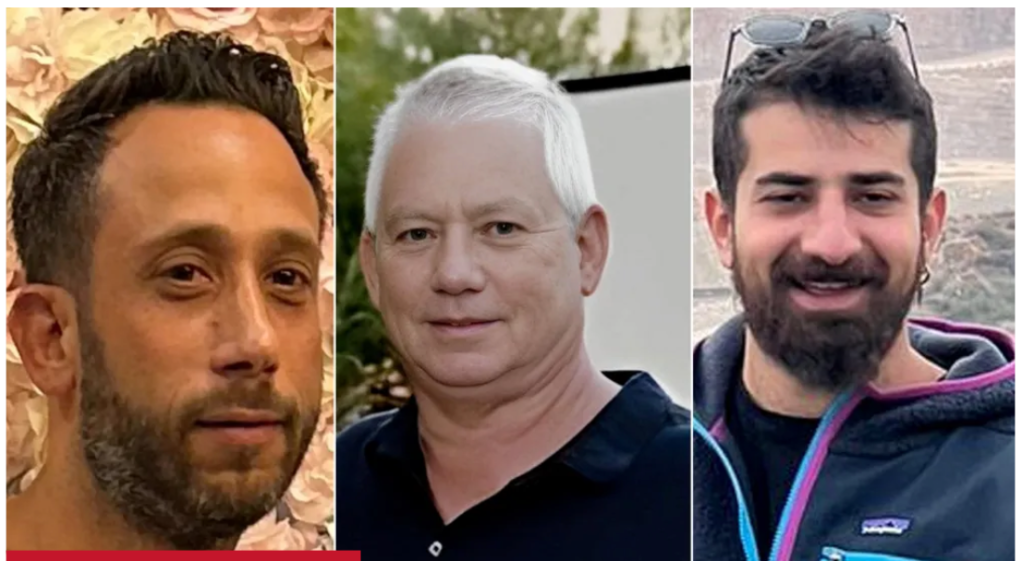 Von zwei Israelis, die bisher als vermisst galten, ist nun klar, dass sie in den Gazastreifen verschleppt und dort festgehalten werden. Damit erhöht sich die Zahl der Geiseln auf 136, wie IDF-Sprecher Daniel Hagari heute bekanntgab. Auf Bitten der Familie wurden die Namen zunächst nicht bekannt gegeben. Später las man, dass es sich um Hanan Yablonka, 42, von Tel Aviv, und Idan Shtivi, 28, aus Ganei Tikva handelt. Die dritte Person auf dem Bild, Ilan Weiss (Mitte), wurde als ermordetet benannt.