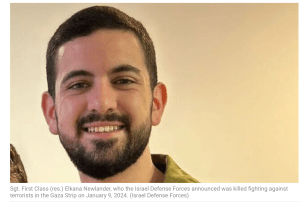 Auch heute muss die IDF wieder den Tod eines Soldaten bekanntgeben. Sgt. First Class (res.) Elkana Newlander, s’’l, verlor sein Leben bei einem Kampf im zentralen Gazastreifen.