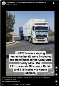 Jordanien beklagt sich, dass Israel sie immer wieder bei der Lieferung von Hilfsgütern in den Gazastreifen behindert. Das betonte der jordanische Aussenminister Ayman Safadi in einer Pressekonferenz mit seiner australischen Amtskollegin. Diese Behinderungen würden dazu führen, dass nur 10% der notwendigen Lieferungen im Gazastreifen ankommen. Israel hingegen betont, dass die Abwickelung der Transporte, sowohl in Nitzana nach Rafah als auch in Keren Shalom schneller vor sich gehen, als es der UNO gelingt, sie zu transportieren.