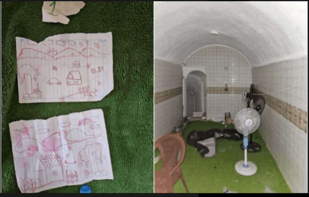 Unter dem Haus eines hochrangigen Hamas-Führers in Khan Younis entdeckte die IDF einen Tunnel, in dem schätzungsweise 20 Geiseln festgehalten worden waren. Im Tunnel versteckte Hamas-Terroristen konnten eliminiert werden. Der Raum, der wahrscheinlich als Aufenthaltsort für die Geiseln diente, befand sich etwa 20 m unterhalb der Erde und ist etwa einen km vom Eingang entfernt. Einige der Geiseln gehören zu den bereits freigelassenen. So fand man u.a. Zeichnungen der kleinen Emilia Aloni. In dem Verliess gab es fünf zellenartige Räume, die alle mit einer Matratze und einem WC mit Sichtschutz (!) ausgestattet waren. In zwei sehr sauber verfliesten Räumen erkennt man sogar eine Dusche mit Duschbecken. Die Tunnel selbst waren teilweise vermint und wiesen sprengstoffsichere Türen auf.