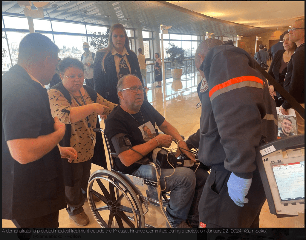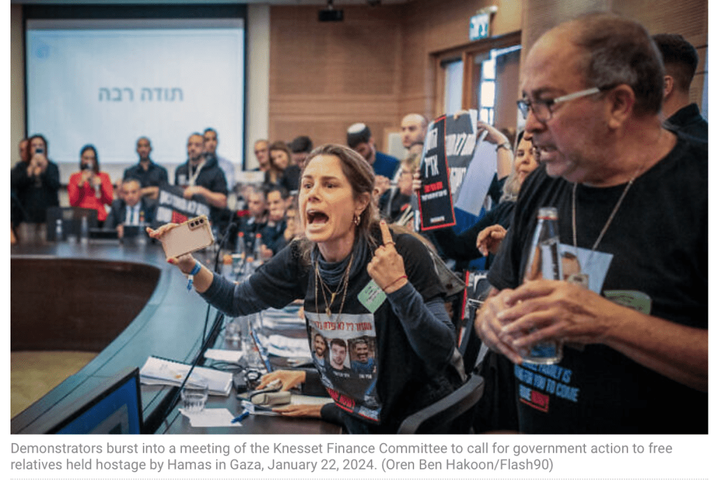 Am heutigen Vormittag stürmten Angehörige von Geiseln eine Sitzung des Finanzausschusses in der Knesset. Es gelang dem Sicherheitspersonal der Knesset nicht, sie am Eindringen in die Sitzungsräume zu hindern. Sie mussten sie teils unter Gewaltanwendung abführen, ein älterer Mann benötigte medizinische Erstversorgung und musste im Rollstuhl hinausgebracht werden. «Ihr werdet nicht hier sitzen, während unsere Kinder sterben», schrien die Demonstranten. «Was ist mit der Freilassung von Gefangenen?» Eine andere Frau klagte: «Jeden Tag sterben sie dort und jeden Tag wird bekannt gegeben, dass eine weitere Geisel getötet wurde. So kann es einfach nicht weitergehen und wir sind in die Knesset gegangen, um zu fordern, dass sie aufstehen und etwas unternehmen. Niemand wird uns zum Schweigen bringen.»