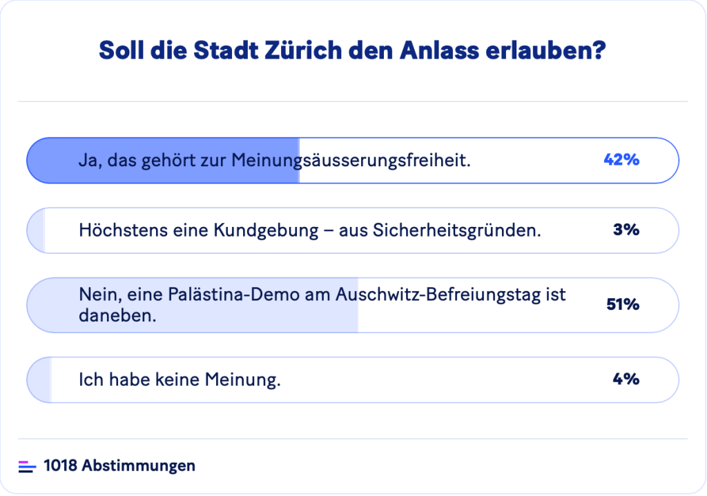 Ausgerechnet am von der UNO ausgerufenen Holocaust-Gedenktag, am Samstag, 27.1.24, soll in Zürich eine pro-palästinensische Grossdemo stattfinden. Auf dem vom ‘palestinecommiteezurich’ gestalteten Flyer steht auf Arabisch «From the river to the sea, Palestine will be free». Ein klarer Aufruf zur Gewalt gegen Juden und eine antisemitische Aussage. Unter der Angabe, wo und wann die Demo stattfinden soll, steht recht klein zu lesen: «Kein Platz für Rassismus, Islamfeindlichkeit und Antisemitismus.» Diverse Kommentare kann man bei Instagram lesen. Eine Gegenveranstaltung ist nicht geplant. Sehr wohl wurde von den Organisatoren von #yellowumbrella eine Einsprache bei der Stadt Zürich deponiert, die Veranstaltung nicht zu bewilligen. Katharina Schorer vom städtischen Sicherheitsdepartement erklärt, ‘Man sei sich der Brisanz des Datums im ersten Moment nicht bewusst gewesen,’ und doppelte nach: «Der historische Hintergrund des 27. Januar ist an sich kein hinreichender Grund, um eine Demonstration zu verbieten. Die juristischen Hürden für ein Demonstrationsverbot sind hoch.»