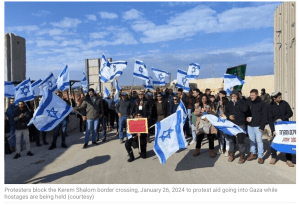 Die Demonstrationen am Warenübergang Kerem Shalom gehen weiter. Waren es bisher nur einige Dutzend Teilnehmer, so werden heute einige Hundert erwartet. Ihr Ziel ist es, die Lieferung humanitärer Waren in den Gazastreifen zu verhindern, solange dort noch Geiseln festgehalten werden.