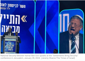 Der rechtsextrem-nationalistische Ben-Gvir forderte gestern auf der Versammlung ‘Siedlungen bringen Sicherheit’ in Jerusalem erneut, die ‘freiwillige’ Auswanderung der gazanischen Zivilbevölkerung zu unterstützen. Allerdings liess er es auch völlig offen, wohin sich die so Vertriebenen wenden sollten. Nur eine Wiederansiedlung Israels im ehemaligen Gush Katif Block könne Israel davor schützen, wieder mit erneutem und stärker werdendem Terrorismus konfrontiert zu werden, behauptete er. In seinen Ausführungen berief er sich, so wie es auch Netanyahu in den letzten Wochen vermehrt tut, auf die Torah. Das allerdings ist nicht beeindruckend, sondern eher der Ausdruck der Bigotterie dieser pseudo-religiösen Gruppe von israelischen Extremisten. Er wandte sich unter lauten Buh-Rufen seiner Freunde direkt an Netanyahu: «Es wäre eine Schande, wieder 15 Jahre zu warten, bevor wir nach Gush Katif zurückgehen. Jetzt ist die Zeit, nach Hause zurückzukehren, Siedlungen aufzubauen, die Todesstrafe für Terroristen einzuführen und unseren Sieg zu erringen.» An der Versammlung nahmen 12 Minister und 15 MKs der Koalitionsparteien teil. Busha! Shame on you!