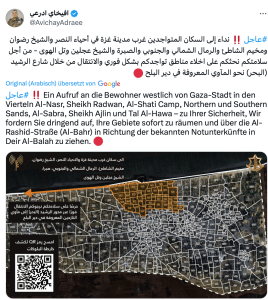 Die IDF forderte heute am frühen Vormittag erneut die Bewohner einiger Gebiete in Gaza City auf, sich über die Küstenstrasse in den Süden des Gazastreifens zu evakuieren. Der Grund für die erneute Evakuierungsmassnahme ist, dass es erneut zu heftigen Kampfhandlungen im Stadtgebiet kommt. Um die Situation nicht noch weiter eskalieren zu lassen, werden wieder Kräfte der IDF in der Stadt stationiert werden. Währenddessen gehen die Kämpfe in Khan Younis ungehindert weiter. Einige Terrorzellen wurden mit Unterstützung der IAF eliminiert, Waffenlager und Raketenabschussrampen wurden zerstört. Nachdem am Wochenende die Aktivitäten der Hamas im nördlichen Gazastreifen wieder heftig zugenommen haben und der Beschuss von dort auf die Regionen nördlich der Grenze erneut verstärkt wurde, wurden auch wieder Truppenteile der IDF in diese Gebiete verlegt. Man geht davon aus, dass sich derzeit etwa 2.000 Terroristen dort befinden. Der für die kommenden Tage geplante Beginn der Rücksiedlung von evakuierten Bewohnern in den Norden des Gazastreifens verzögert sich deshalb bis auf Weiteres.