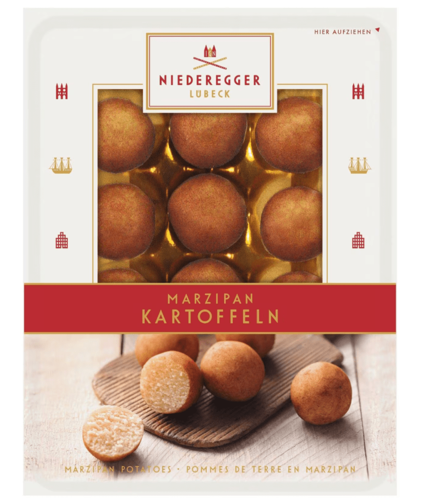 In Lübeck war es Johann Georg Niederegger, der mit seiner Konditorei den Grundstein für den unbestritten marktführenden Marzipanhersteller Deutschlands legte. Täglich werden bis zu 30.000 kg (!) Marzipan hergestellt. Das Geheimnis des Konfekts: 2/3 Mandeln und 1/3 Zucker werden bis zur völligen Homogenisierung vermahlen. Rosenwasser und andere Komponenten werden in die fast fertige Masse eingearbeitet. Die Palette der Produkte ist gross, vom einfachen Marzipan Brot, die Marzipankartoffeln, Marzipantorten, Figuren Weihnachts- und Osterprodukte bis zu gluten- und laktosefreien, sowie veganen Produkten.