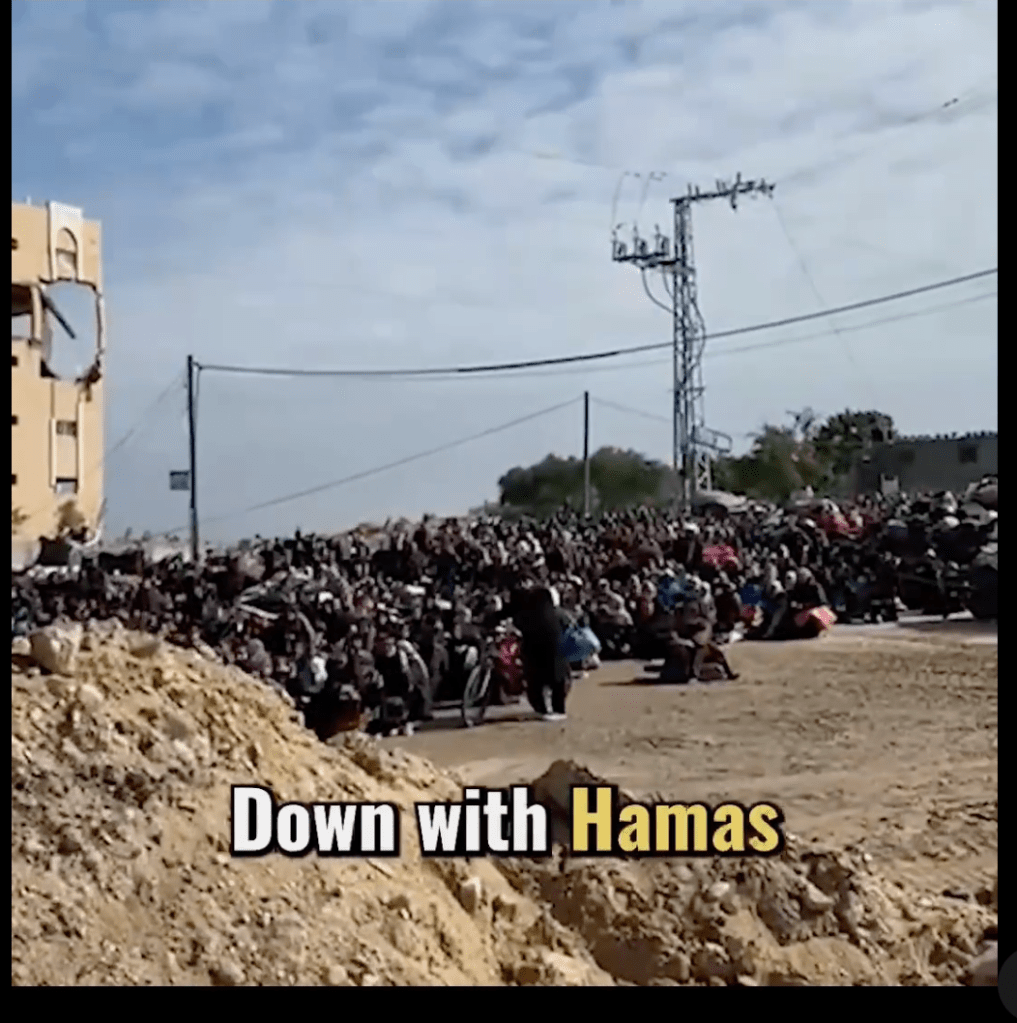 Innerhalb des Gazastreifens werden die Proteste gegen die Hamas-Terror Organisation immer lauter. Derzeit kursiert ein undatiertes Video in den sozialen Medien, in dem ein gazanischer Zivilist sich auf Hebräisch an einige Soldaten, die nicht im Bild sind, wendet. «Geht nicht weg von hier. Die Leute sind Arschlöcher, sie verstehen nichts. Wir haben mit all dem nichts zu tun. Es waren [Yahya] Sinwar und [Ismail] Haniyeh. Haniyeh sitzt in einem Restaurant in der Türkei, und Sinwar ist unter der Erde und isst Fleisch – während wir hier sind und als Kugelfang für sie herhalten müssen.»