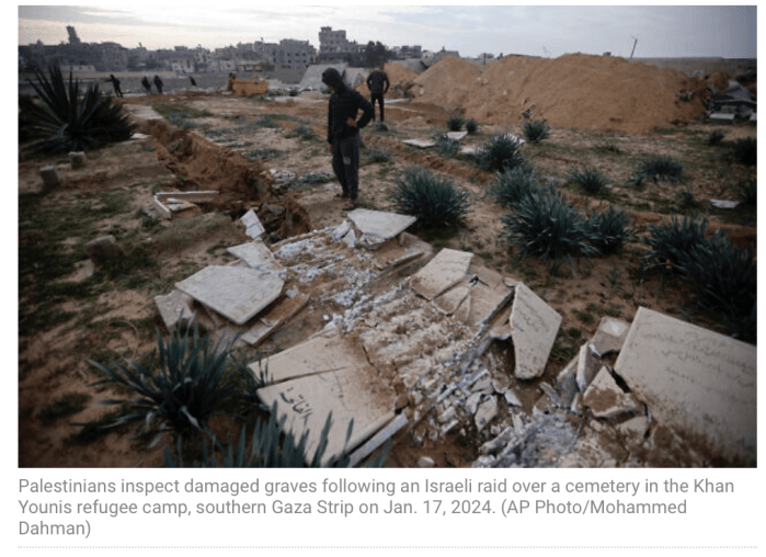 In den Bemühungen, den Aufenthaltsort der israelischen Geiseln zu finden oder den Verbleib von während der Geiselhaft ermordeten oder gestorbenen Geiseln zu entdecken, öffnen Soldaten frisch angelegte Gräber. Das berichtete der ehemalige Sprecher der IDF, Jonathan Conricus. Er äusserte sich gegenüber CNN als Nahostexperte. «So weit müssen israelische Truppen gehen, um israelische Geiseln zu finden. Es gibt immer noch 136 Geiseln in Gaza. Einige von ihnen, wahrscheinlich die Hälfte, werden für tot gehalten, und es ist die Aufgabe der IDF, lebende Geiseln zu finden, und wenn das nicht möglich ist, dann eben tote.» Auch im Shifa Spital gab es Informationen, dass sich in der Leichenhalle des Spitals die sterblichen Überreste von israelischen Geiseln befinden. Also gingen die Soldaten hinein und überprüften die Information. Sie fanden dort aber nichts. «Das ist notwendig, wenn man es mit einem Feind wie der Hamas zu tun hat. Wenn sie so tief sinken, dass sie mit Leichen handeln, dann muss die IDF sie am Ende des Tages zurückbekommen.» Conricus berief sich dabei auf den grausigen Fund, den Soldaten in einer Eisdiele machten. Sie fanden dort den Kopf eines von der Hamas ermordeten Soldaten, den er zum Verkauf anbieten wollte. Beim Öffnen der Gräber hatten die Soldaten ein Tunnelsystem unter einem Friedhof entdeckt.