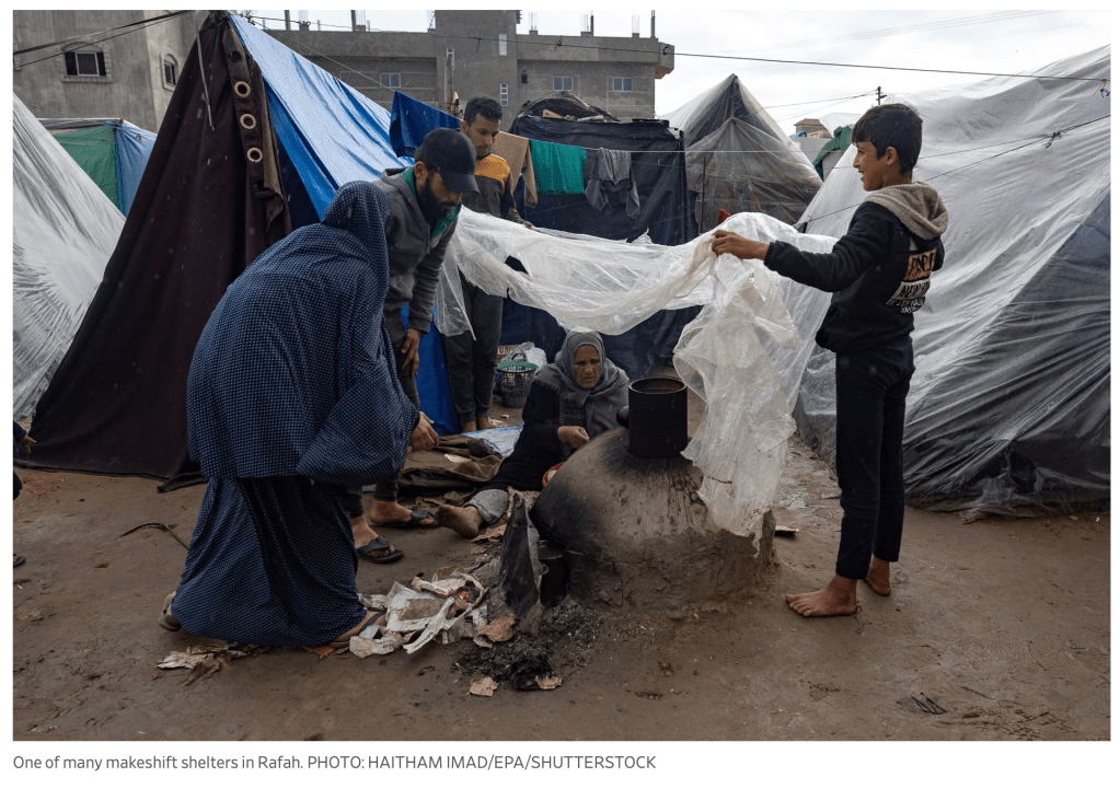 Rafah, so wird vermutet, ist die letzte Hochburg der Hamas-Terror-Organisation. Hier wird sich das Schicksal der Terroristen am militärischen Erfolg der IDF messen. Noch zögert die IDF, die grosse Offensive zu starten. Nicht nur auf Druck des Auslands, auch und vor allem aus Sorge Israels um das Leben der Zivilisten wurden jetzt Pläne erarbeitet, wie die Zivilbevölkerung sicher aus Rafah evakuiert werden kann. Die Regenzeit ist noch nicht vorbei, es müssen Zeltstädte aus dem Boden gestampft werden, die zumindest einen minimalen Schutz vor dem Regen, der heuer ganz besonders stark fällt, zu bieten.