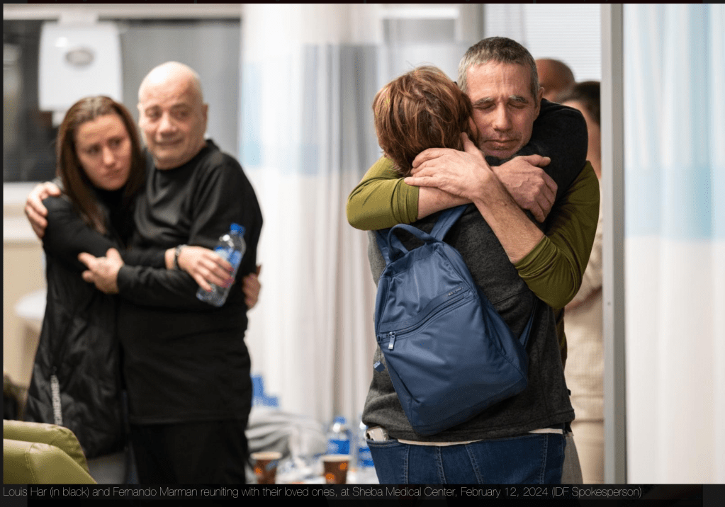 Die Nichte des gestern befreiten Fernando Marman, Maayan Sigal Koren, erklärte, dass ihr Onkel während der gesamten Zeit, die er in Geiselhaft gehalten wurde, nie die für ihn bestimmten Medikamente erhalten habe. «Wir haben alle Medikamente abgegeben und später auch die entsprechenden Listen, was mein Onkel dringend braucht, aber es ist nie etwas bei ihm angekommen. Im Gegenteil, als er gestern von den beiden Vereinbarungen hörte, war er masslos erstaunt, dass es so etwas gab.» Damit dürfte klar sein, dass die Hamas die von Frankreich gelieferten Medikamente, die entsprechend den abgegebenen Listen gekauft wurden, zwar am 18. Januar nach Gaza hineinkamen, aber nie verteilt wurden. Sowohl Frankreich als auch Israel hatten mehrfach gefordert, einen Nachweis zu erhalten, dass die Lieferungen zugestellt wurden. Wie zu erwarten war, blieb dieser Nachweis bis heute aus.