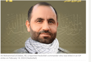 Beim Gegenschlag durch die IDF war, wie heute bekannt wurde, ein Kommandeur der Hisbollah Elite Truppe «Radwan», Ali Muhammad al-Debes, eliminiert worden. Auch sein Stellvertreter Hassan Ibrahim Issa und acht weitere Terroristen wurden tödlich verwundet.