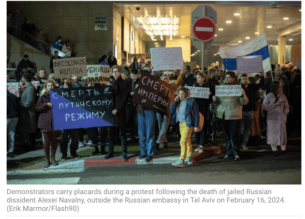 Ausserhalb der russischen Botschaft in Tel Aviv hielten gestern Nacht einige Hundert Demonstranten, zumeist russischer Herkunft, eine Nachtwache für den russischen Regimekritiker Alexei Navalny ab. Navalny war am 16. Februar in einem Straflager in Sibirien plötzlich verstorben, hiess es in einer in den russischen Medien verbreiteten Meldung. Weltweit wurde sein Tod mit grosser Anteilnahme und Trauer kommentiert. Kritiker des russischen Regimes nennen seinen Tod «Mord auf Raten». Navalny hatte sein politisches Tun auf den Kampf gegen die Korruption in Politikerkreisen konzentriert und galt als einer der schärfsten Kritiker von Präs. Wladimir Putin. In Russland waren während ähnlicher Veranstaltungen bereits gestern mehr als 100 Personen festgenommen worden. Aus offiziellen israelischen Kreisen kamen noch keine Kommentare zum Tod Navalnys.