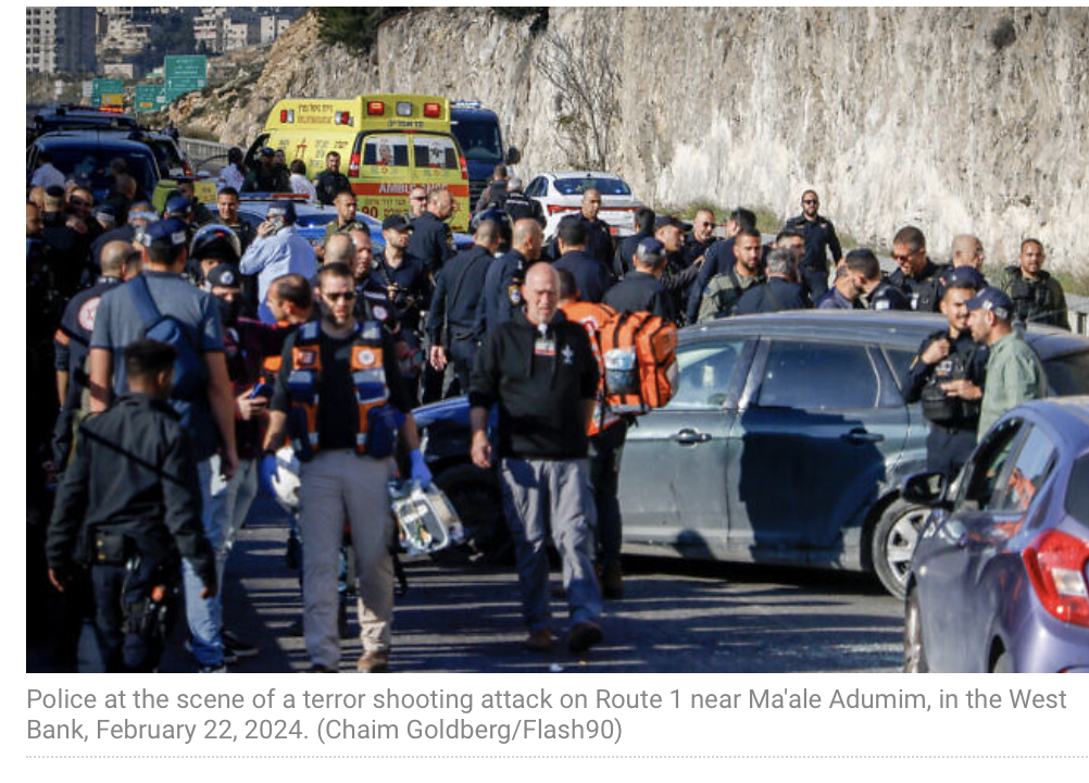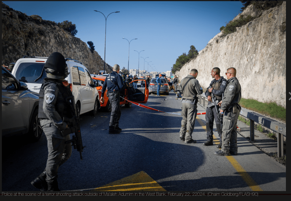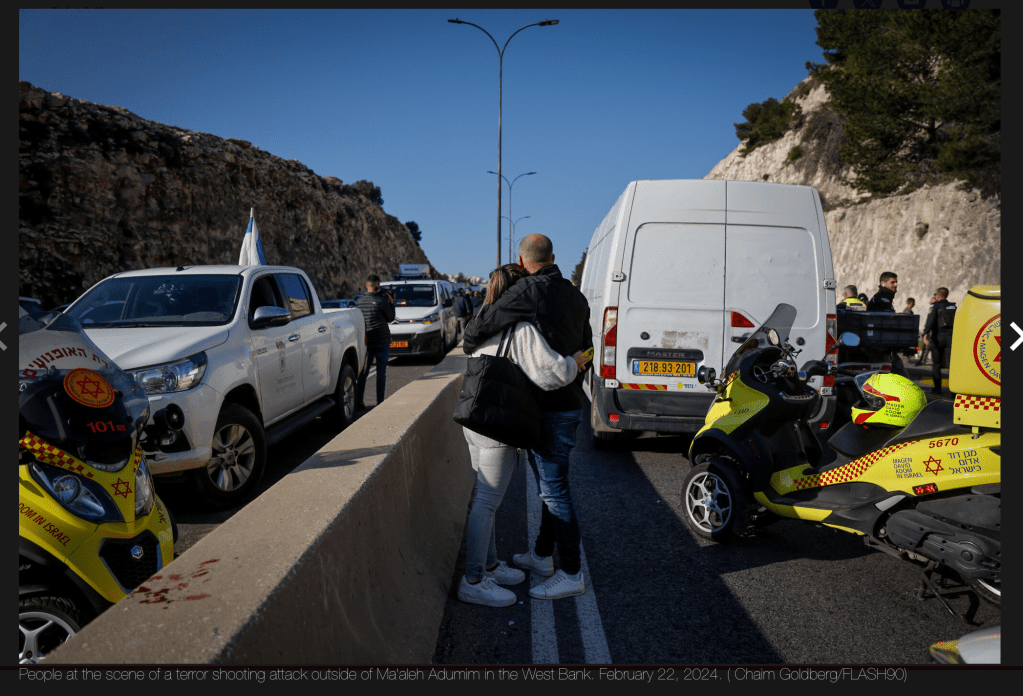 Heute am frühen Vormittag kam es zu einem schweren Terror-Anschlag auf der Strasse zwischen Ma’ale Adumim in Judäa und Jerusalem. 12 Personen wurden verletzt, ein Mann verstarb noch vor Ort an seinen Schussverletzungen. Der Zustand der weiteren Verwundeten wird als mittelschwer bis schwer, in zwei Fällen als lebensbedrohlich angegeben. Zwei der drei Terroristen wurden eliminiert, der dritte wurde festgenommen. Über seinen Zustand ist nichts bekannt. Die Terroristen wurden vom Shin Bet als Muhammad Zawahra, 26, und sein Bruder Kathem Zawahra, 31, sowie Ahmed Al-Wahsh, 31 identifiziert. Alle drei stammen aus der Region um Bethlehem. Bewaffnet waren sie mit Sturmgewehren, umgebauten Maschinenpistolen und Granaten. Sie hatten das Feuer auf eine Kolonne von wartenden Fahrzeugen eröffnet. Die Verletzten wurden in Krankenhäuser in Jerusalem evakuiert. Eines der schwerverletzten Opfer ist eine 23 Jahre alte Schwangere, die zurzeit im Shaare Zedek Krankenhaus operiert wird. Sie selbst ist ausser Lebensgefahr, ob das Baby überlebt, ist noch unklar. Die Chancen dafür stehen aber, so der behandelnde Arzt, gut.