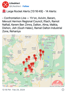 Während der Nachtstunden hat die IDF in Kooperation mit der IAF einige Ziele im südlichen Libanon angegriffen. Dazu gehören einige Raketenabschussbasen, sowie Infrastrukturen, die für Israel eine Bedrohung darstellen. Als Reaktion waren am frühen Vormittag diverse Alarme ausgelöst worden, die über anfliegenden Drohnen und Raketen, abgeschossen von der Hisbollah, warnten. Gegen 12 Uhr wurde erneut eine grosse Zahl von Alarmen ausgelöst, die sich aber teils als Fehlalarm herausstellten. Zahlreiche Drohnen waren jedoch auch mit Sprengstoffen beladen. Es gab keine Schäden.
